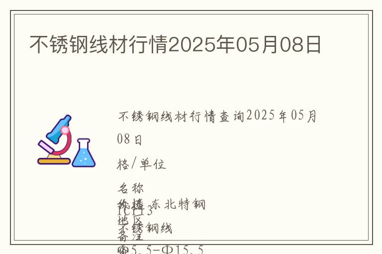 | 不銹鋼線材行情查詢2025年05月08日 |