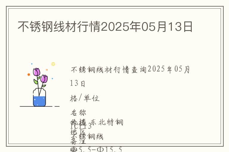 | 不銹鋼線材行情查詢2025年05月13日 |