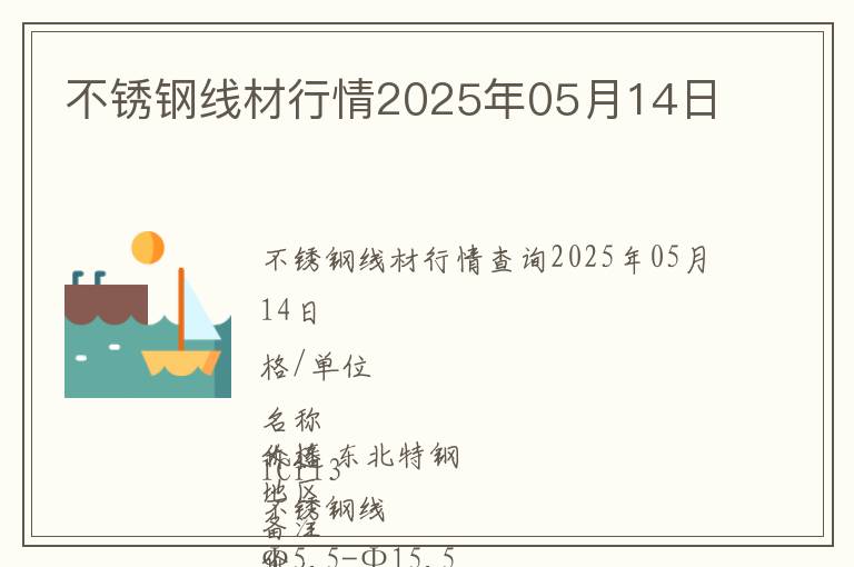 | 不銹鋼線材行情查詢2025年05月14日 |