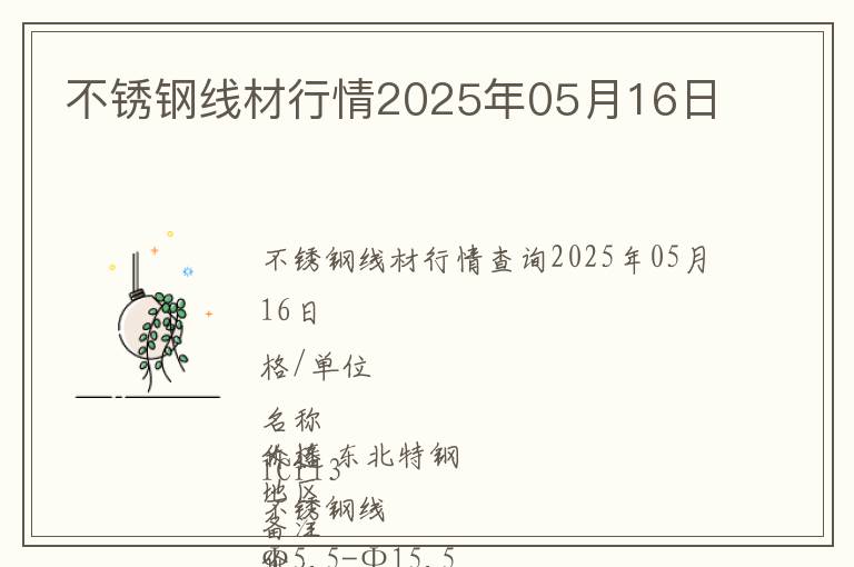 | 不銹鋼線材行情查詢2025年05月16日 |