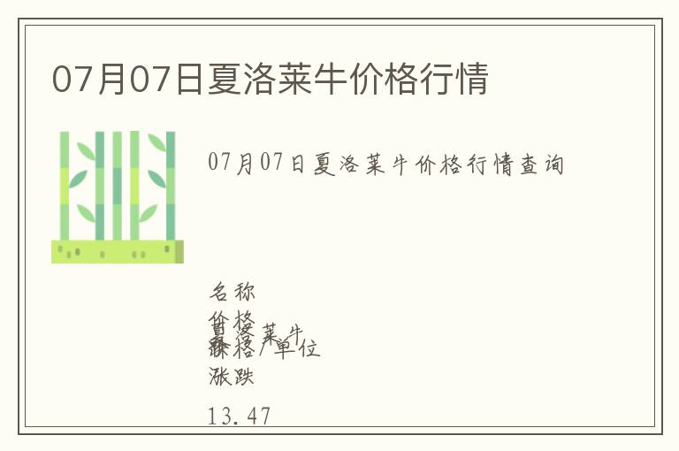 | 07月07日夏洛萊牛價格行情查詢 |