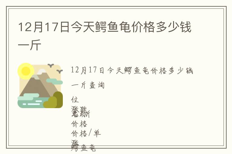 | 12月17日今天鱷魚龜價格多少錢一斤查詢 |