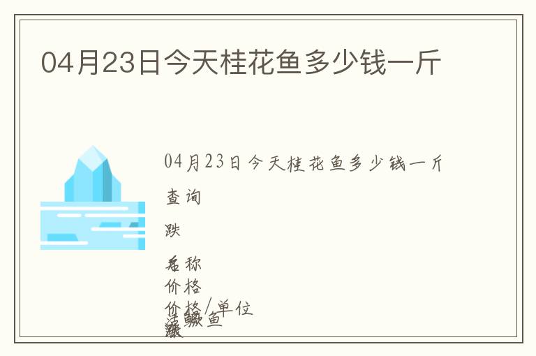 | 04月23日今天桂花魚多少錢一斤查詢 |