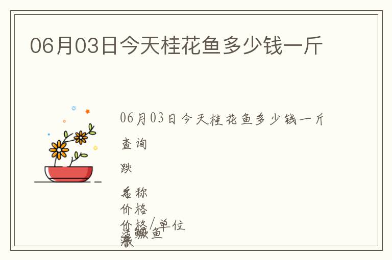 | 06月03日今天桂花魚多少錢一斤查詢 |