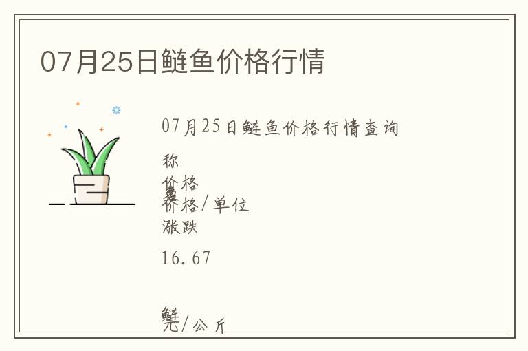 | 07月25日鰱魚價格行情查詢 |