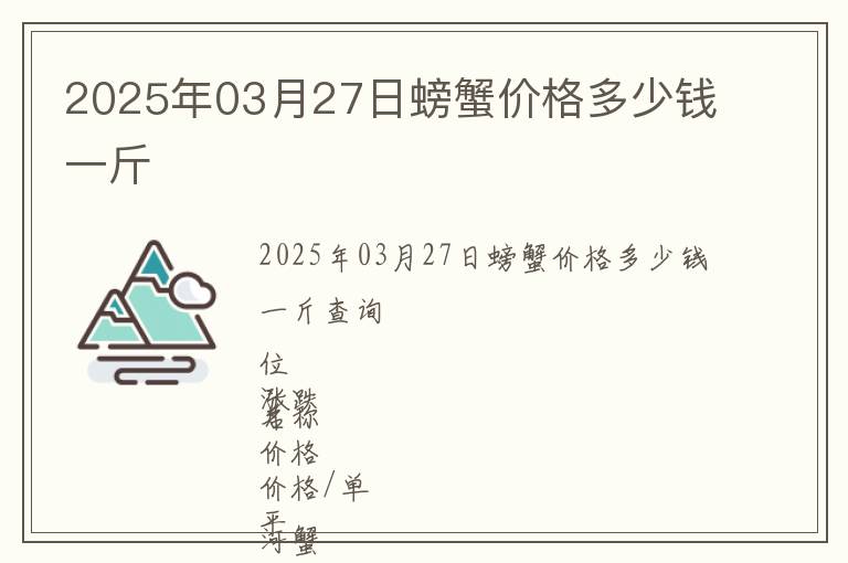 | 2025年03月27日螃蟹價格多少錢一斤查詢 |