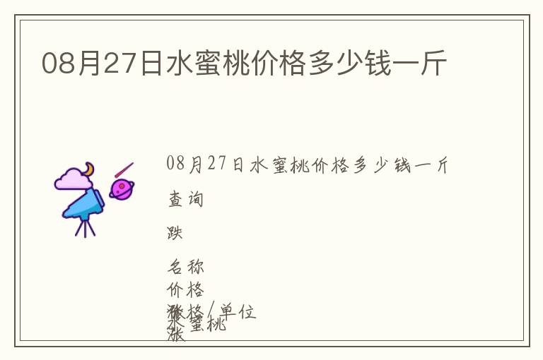 | 08月27日水蜜桃價格多少錢一斤查詢 |