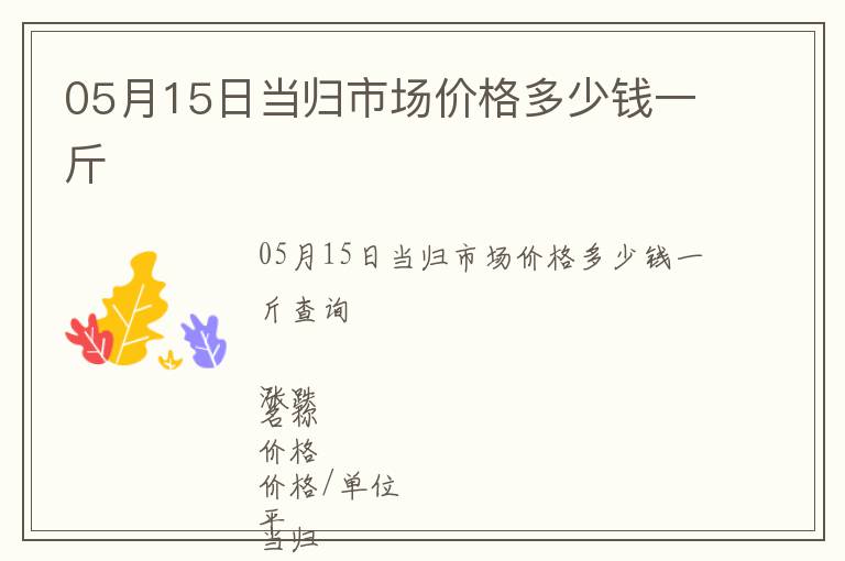 | 05月15日當歸市場價格多少錢一斤查詢 |